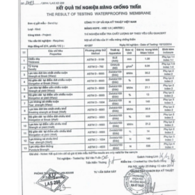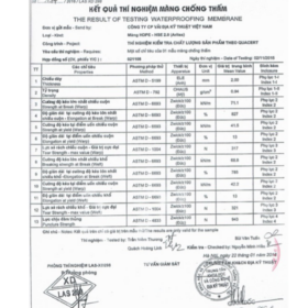 KẾT QUẢ THÍ NGHIỆM MÀNG CHỐNG THẤM HDPE