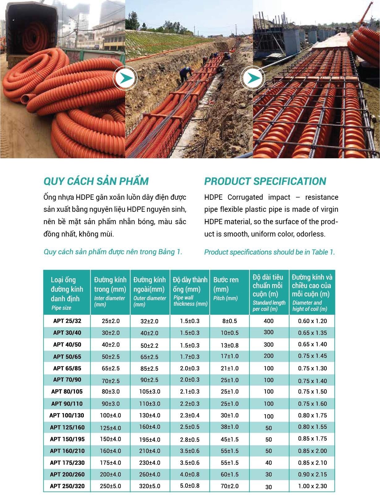 1.1. Đặc tính kỹ thuật của ống nhựa xoắn HDPE